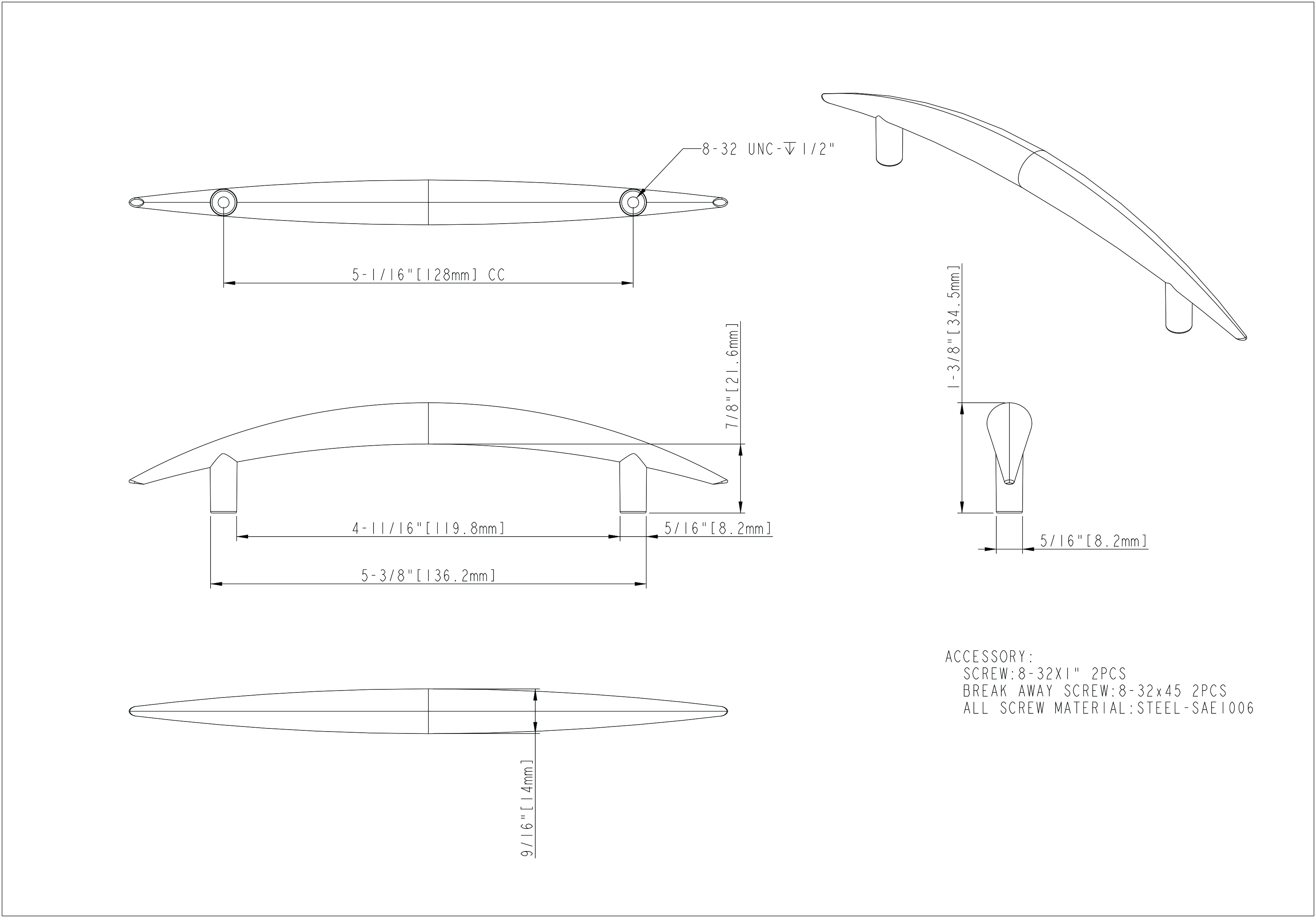 ELEMENTS - Verona 128 mm Center-to-Center Arch Pull