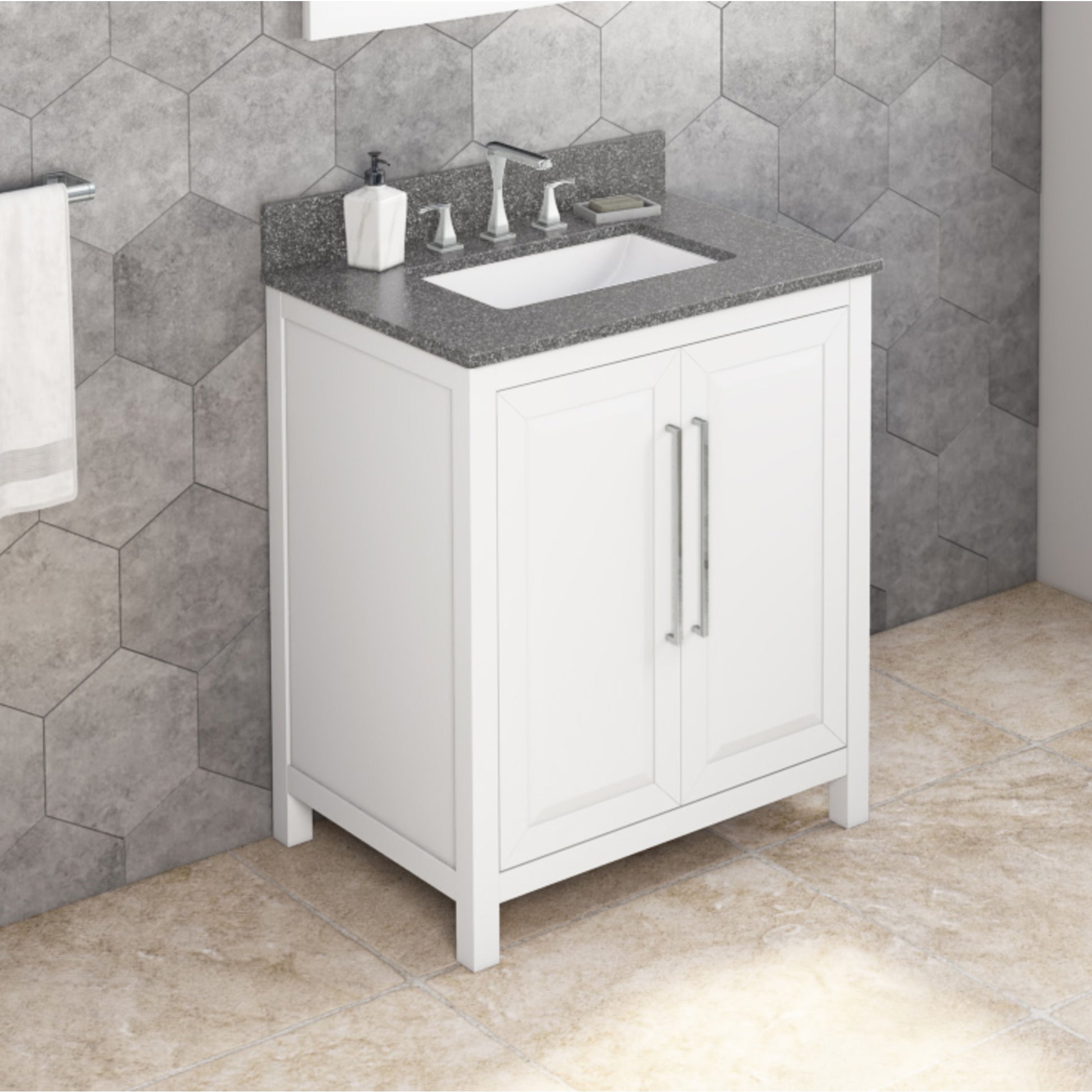 JEFFREY ALEXANDER - 30" White Cade Vanity, Boulder Cultured Marble Vanity Top, undermount rectangle bowl