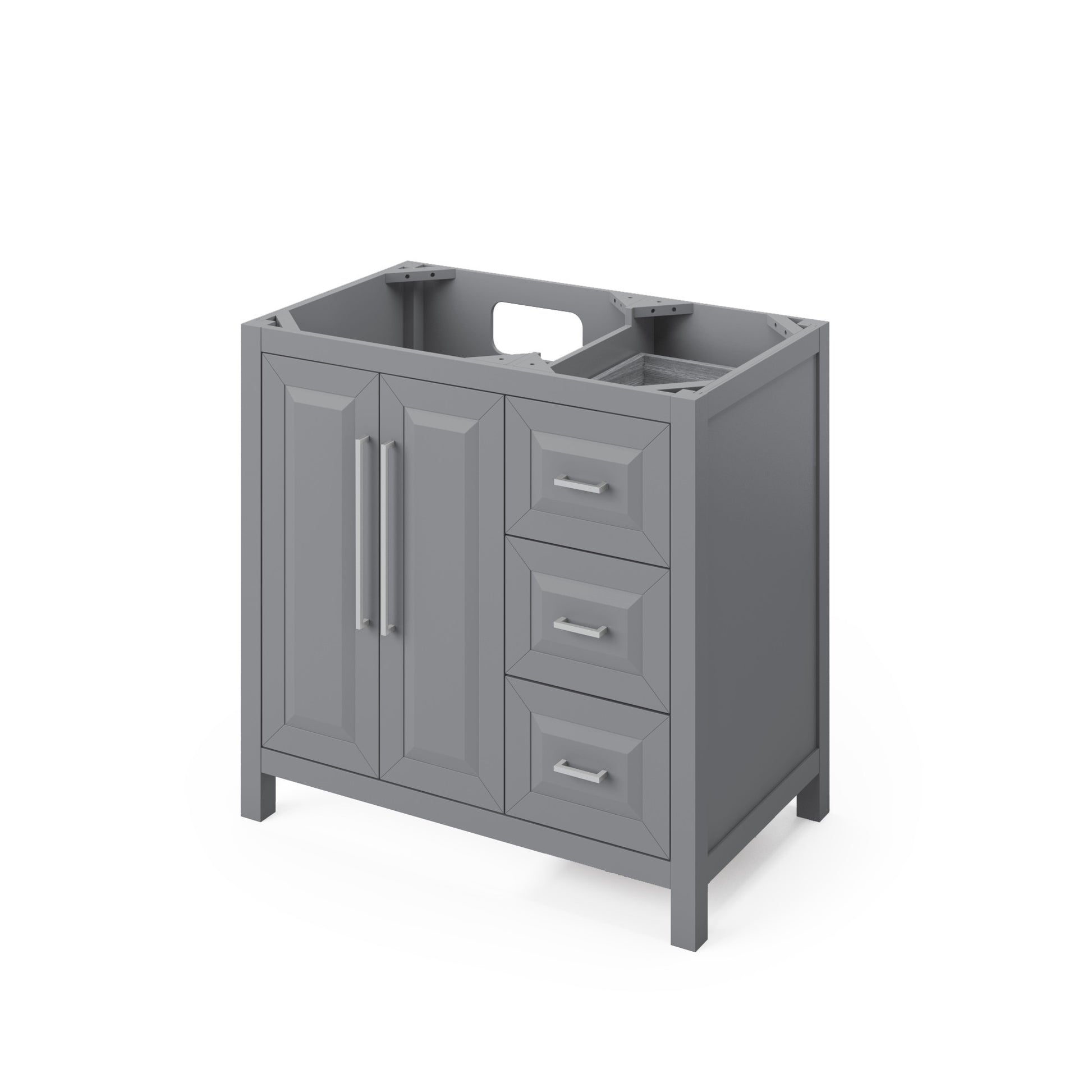 JEFFREY ALEXANDER VKITCAD36GRBGR 36" Grey Cade Vanity, left offset, Black Granite Vanity Top, undermount rectangle bowl - Grey