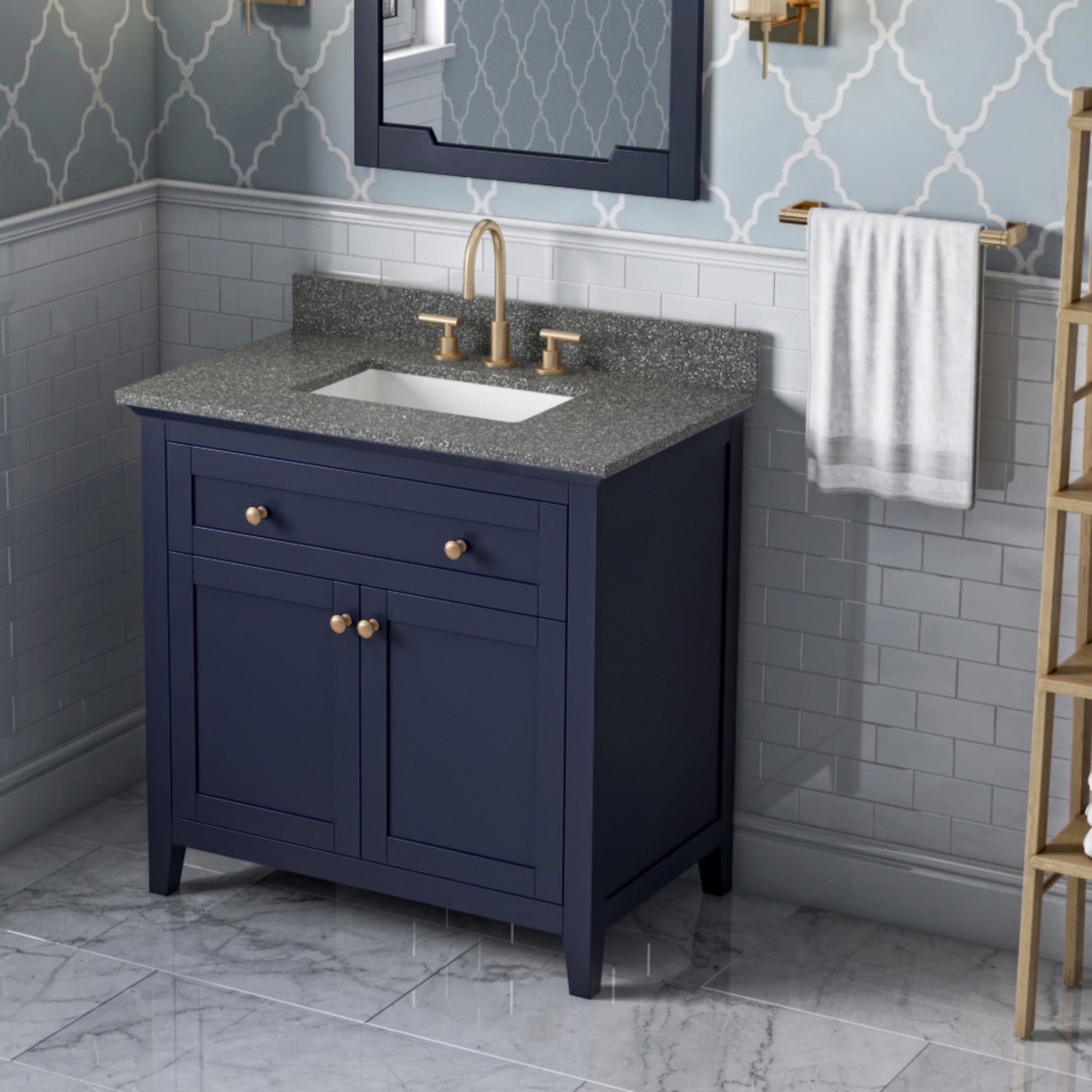 JEFFREY ALEXANDER - 36" Hale Blue Chatham Vanity, Boulder Cultured Marble Vanity Top, undermount rectangle bowl