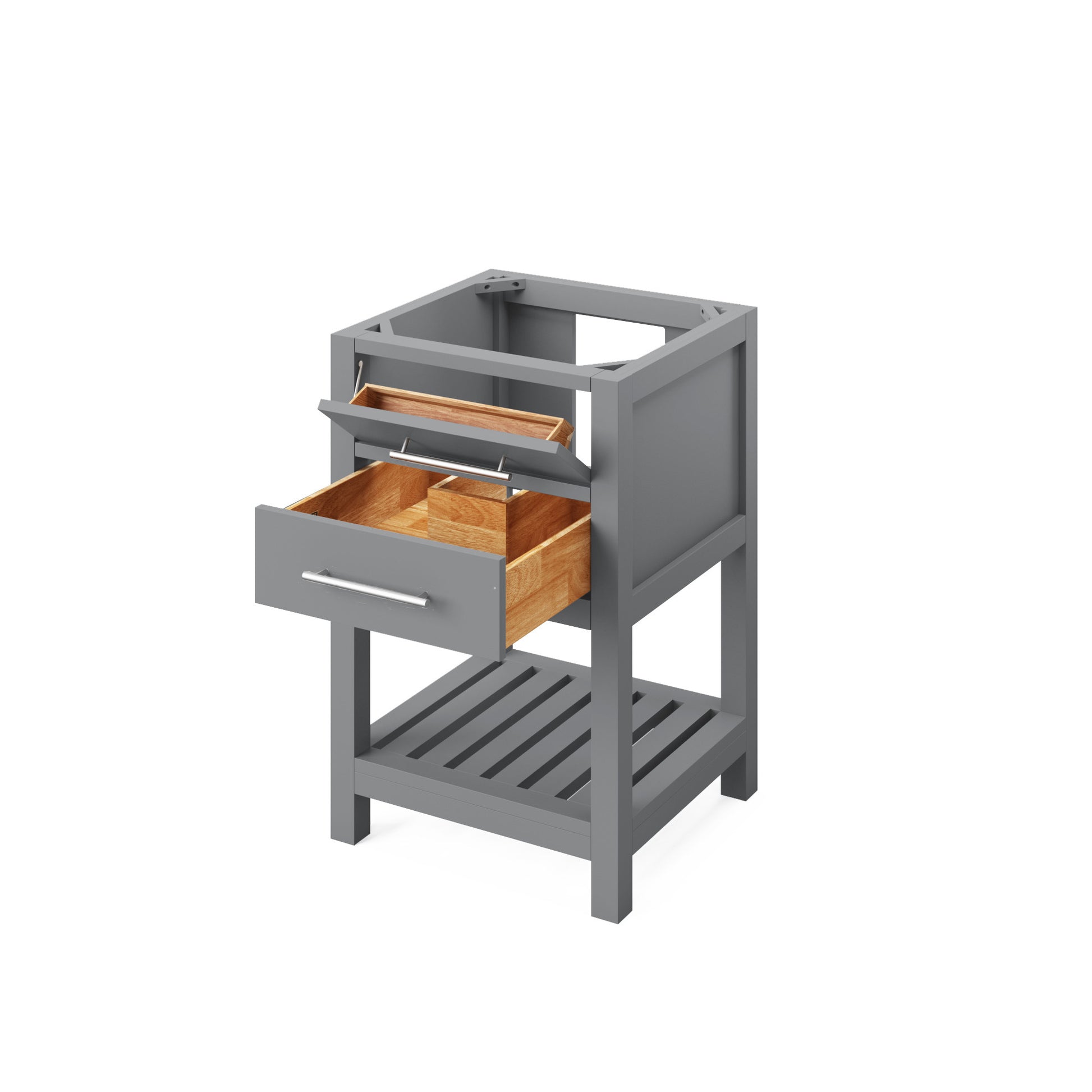 - Tipout storage with custom-sized hardwood tray