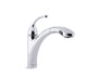 KOHLER K-10433-CP Forte single-hole or 3-hole kitchen sink faucet with 10-1/8" pull-out spray spout