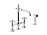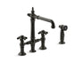 KOHLER K-76519-3M-2MB Artifacts deck-mount bridge kitchen sink faucet with prong handles and sidespray