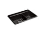 The understated beauty of this KOHLER Riverby sink makes it an elegant and versatile addition to the kitchen. The offset bowls allow you to keep clean and dirty dishes separate, while a sloped base minimizes water pooling. Crafted from enameled cast iron, this sink resists chipping, cracking, and burning for years of beauty and reliable performance. This Riverby sink includes two stainless steel sink racks.