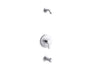 Inspired by pure geometric style, the form of the Elate bathroom faucet collection has a sophisticated fluidity that brings a visually stunning yet simple look to the bathroom. This Elate bath and shower trim kit includes a shower arm with flange, bath spout, and a lever handle. Pair this trim with a Rite-Temp valve to complete the installation. At Kohler, we make it our business to help you create the bathroom space of your dreams.