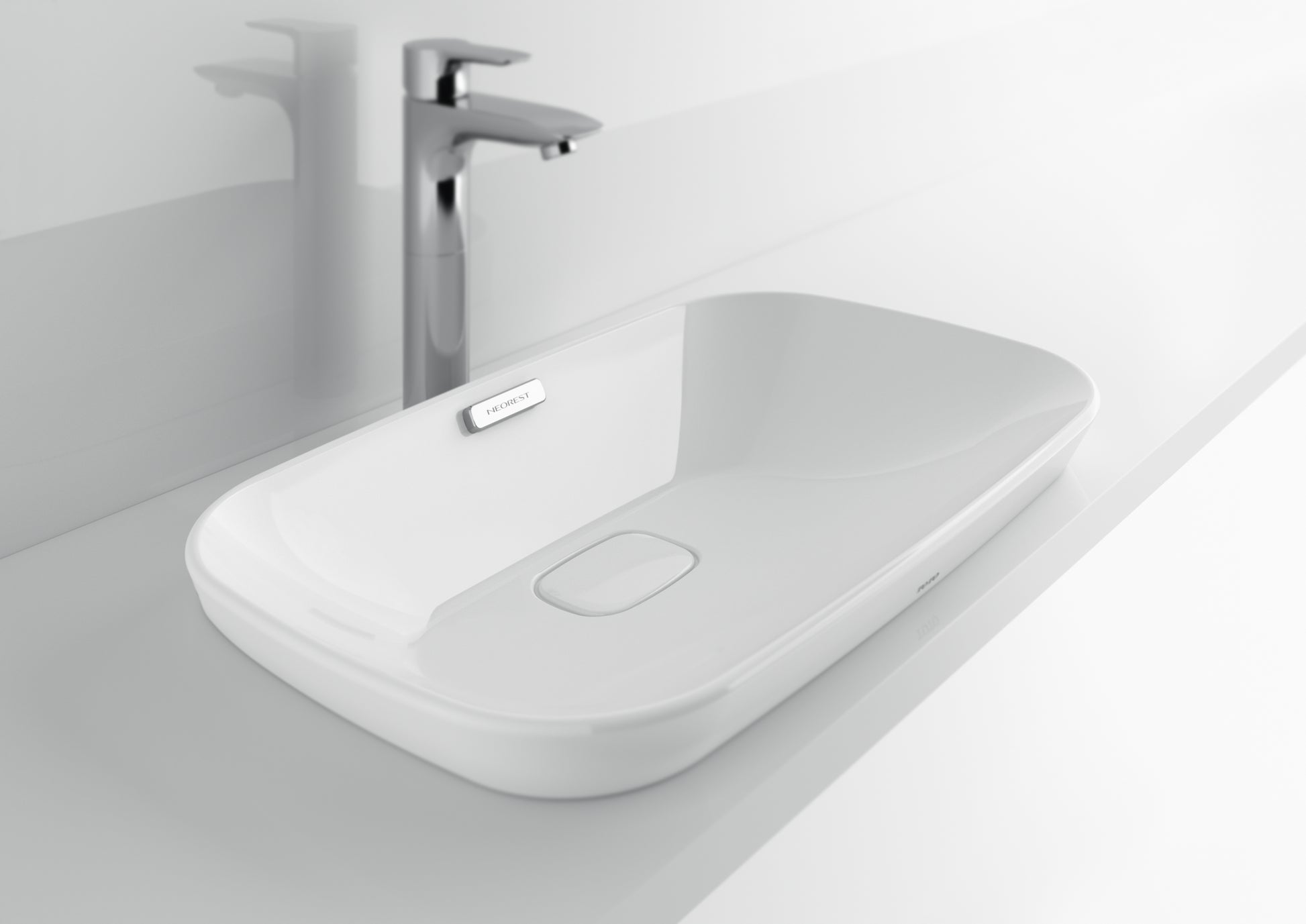 TOTO Neorest Kiwami Rectangular Semi-Recessed Fireclay Vessel Bathroom Sink with CEFIONTECT converges innovation with striking design. The Neorest Kiwami sink features TOTO's CEFIONTECT glaze, minimizing waste from sticking to ceramic surfaces, keeping your sink cleaner longer. The Neorest Kiwami is made of fireclay, a fine yet strong and durable ceramic material. The Neorest Kiwami includes a decorative drain cover and is ADA complaint.