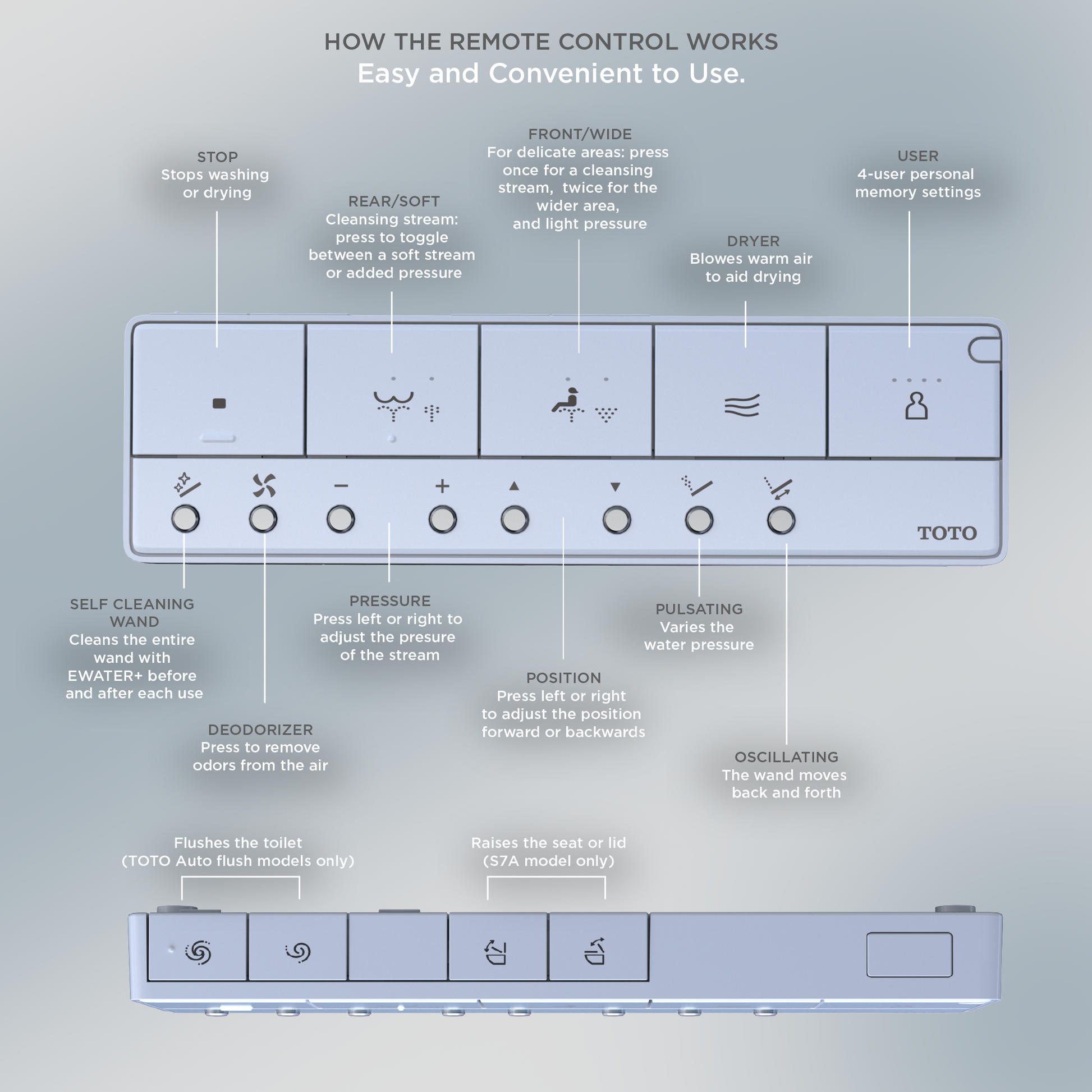 - A REFRESHING CLEAN - Gentle yet powerful rear and front warm water cleansing; Adjustable temperature and pressure settings; oscillating and pulsating option creates a refreshing clean every time; WASHLET+ concealed connection for seamless integration